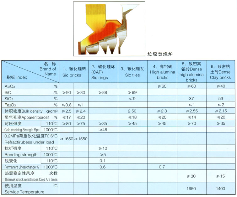 垃圾焚烧炉用耐火材料